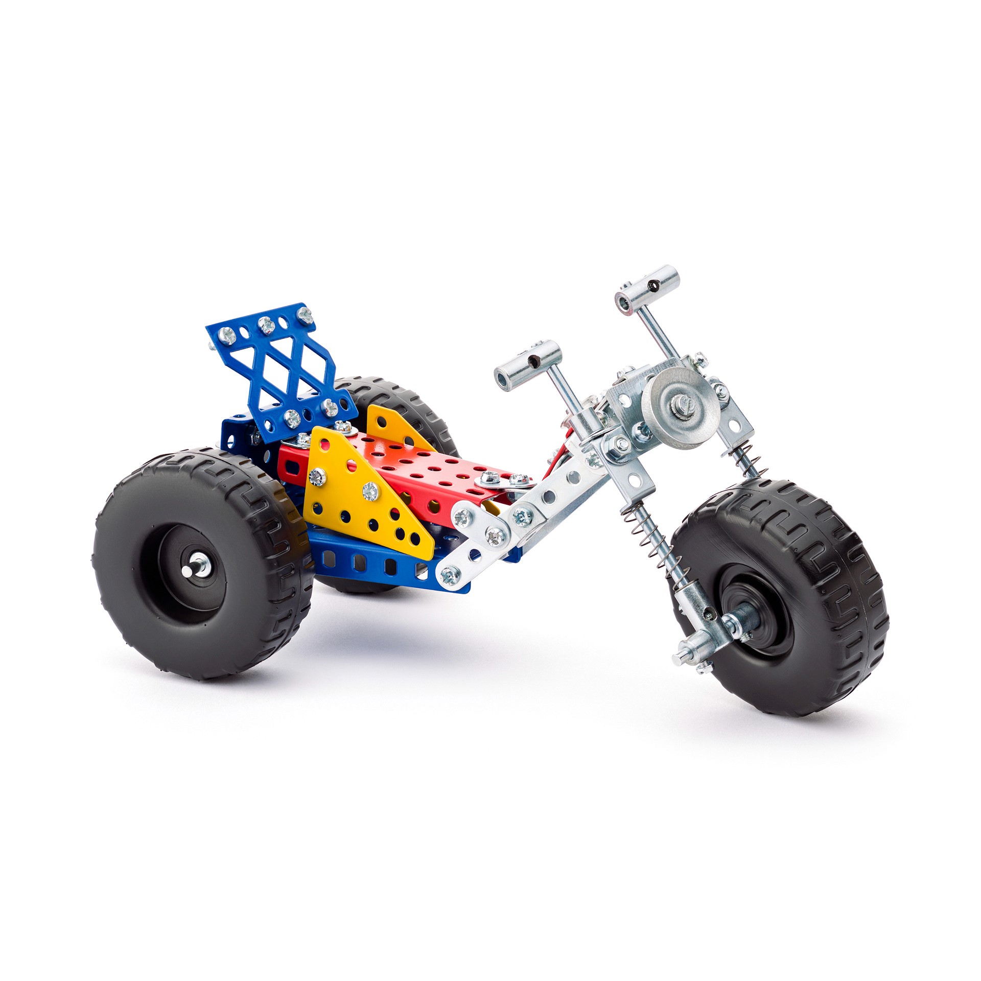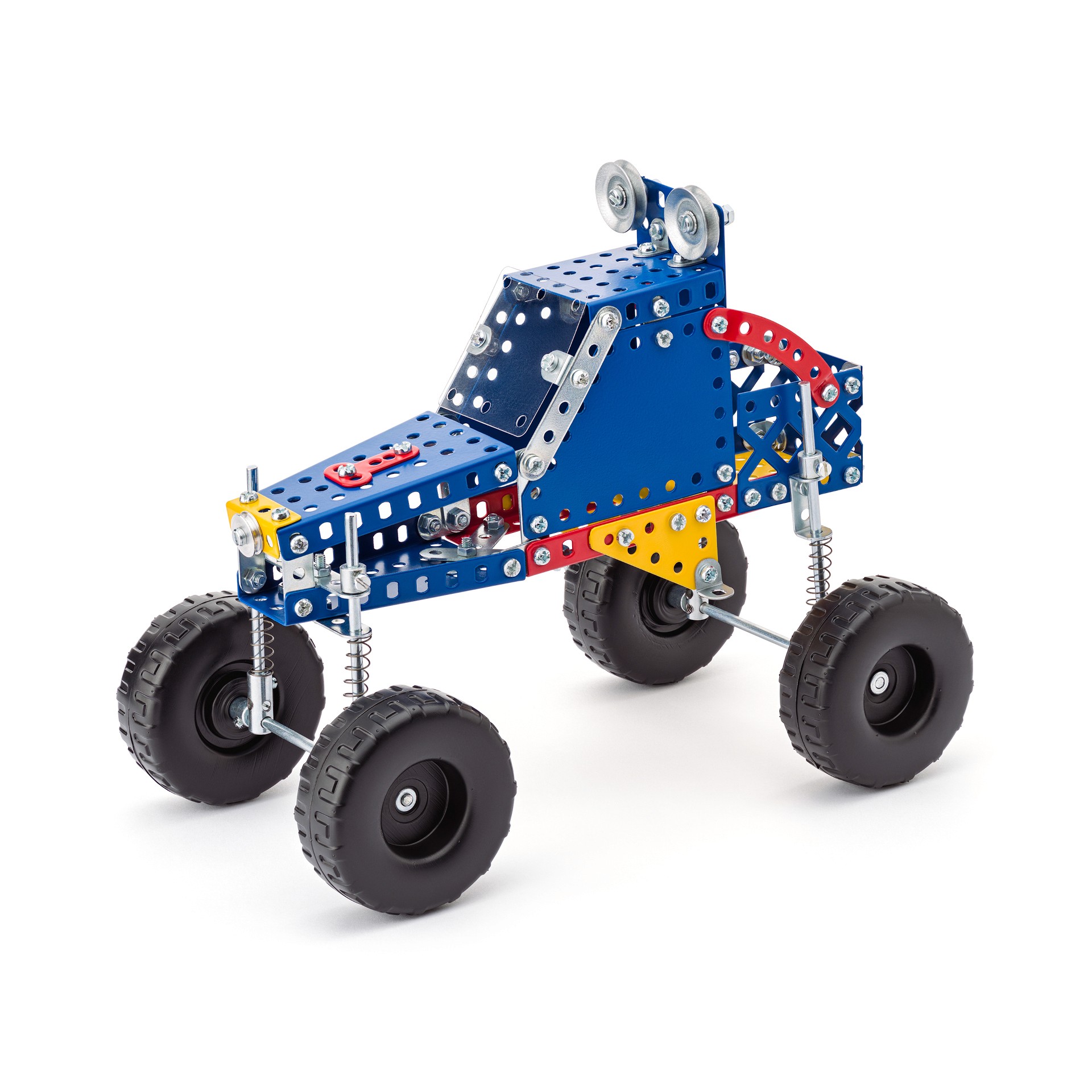 V této stavebnici byly poprvé použity speciální pružiny k odpružení kol. Vyzkoušejte si svou zručnost a v zápalu hry se přesvědčte o tom, s jakou lehkostí se vámi postavené modely vypořádají s překážkami. Můžete sestavit až 10 různých modelů.