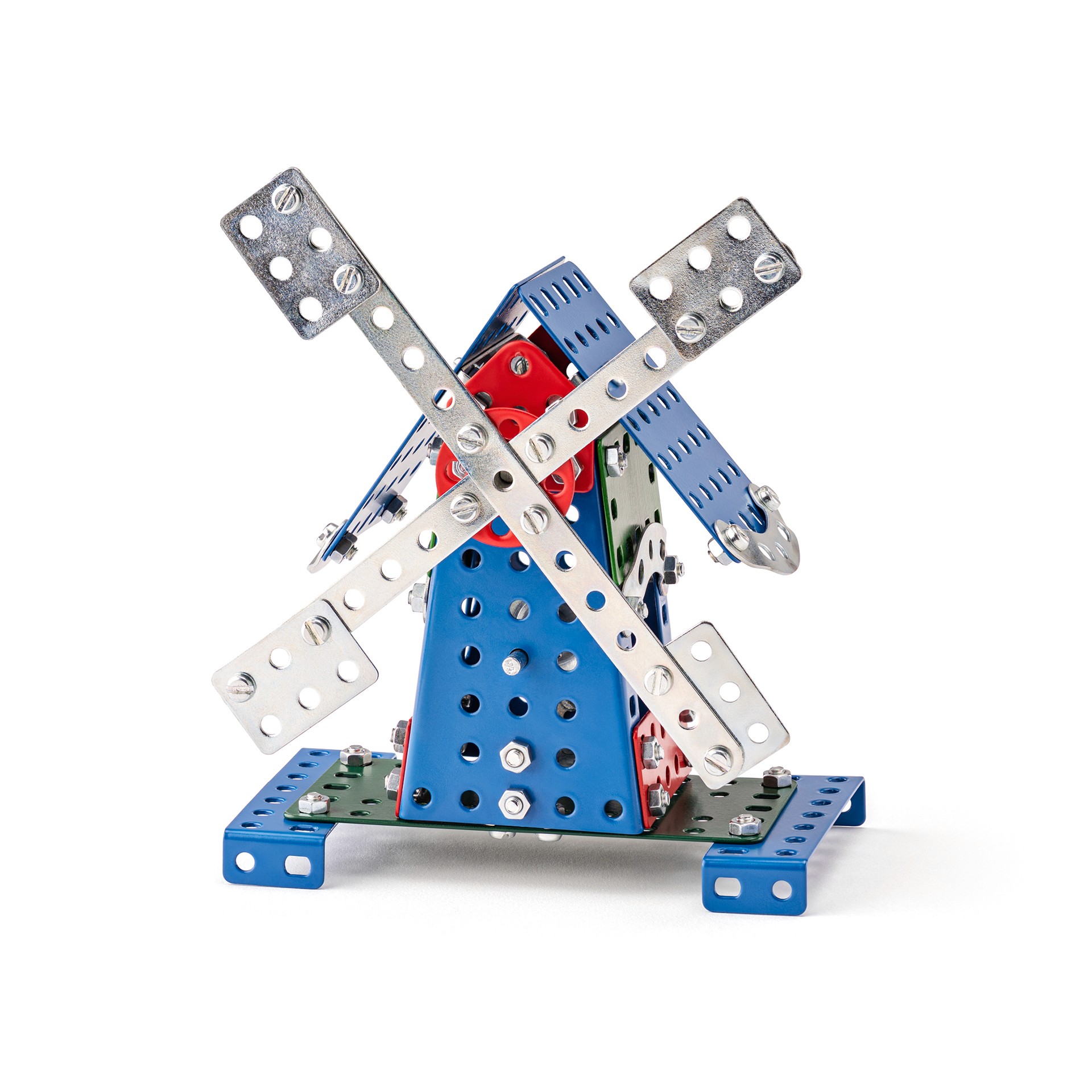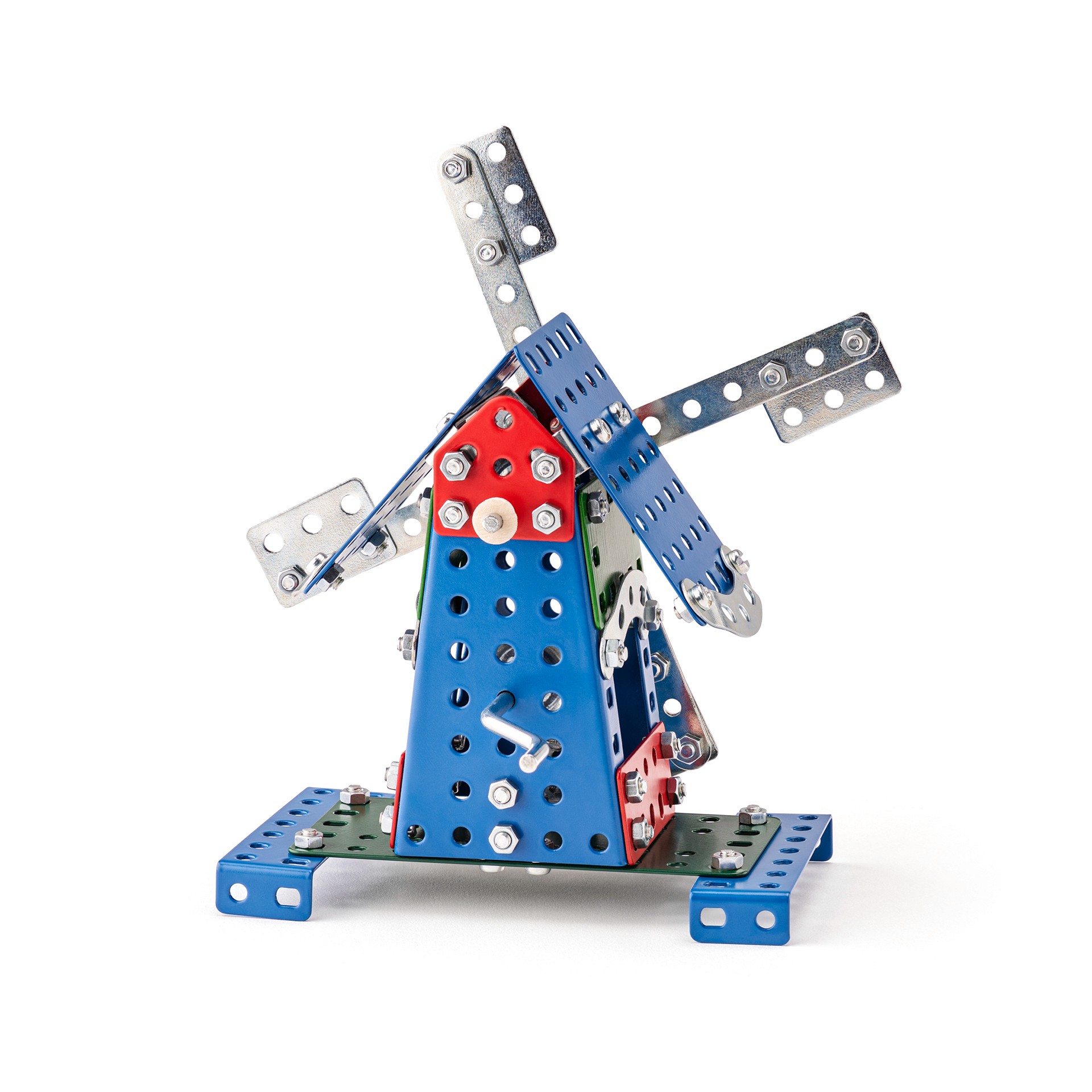 Klasická stavebnice Merkur M19 – Mlýn nabízí až 10 modelů k sestavení. Hlavní z nich, funkční mlýn s otáčivými lopatkami, potěší každého tvůrce. Ideální pro zvídavé ruce i mysl.